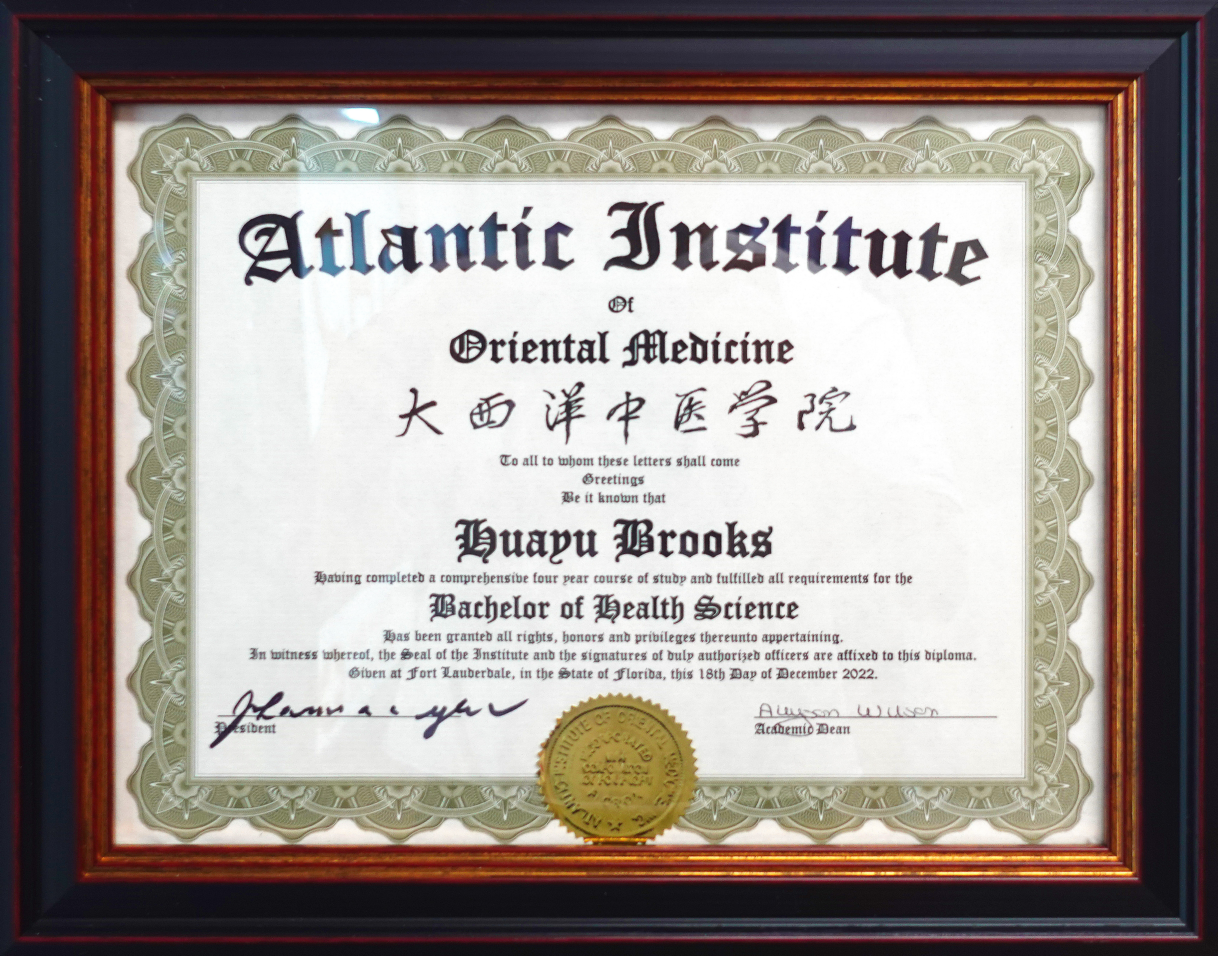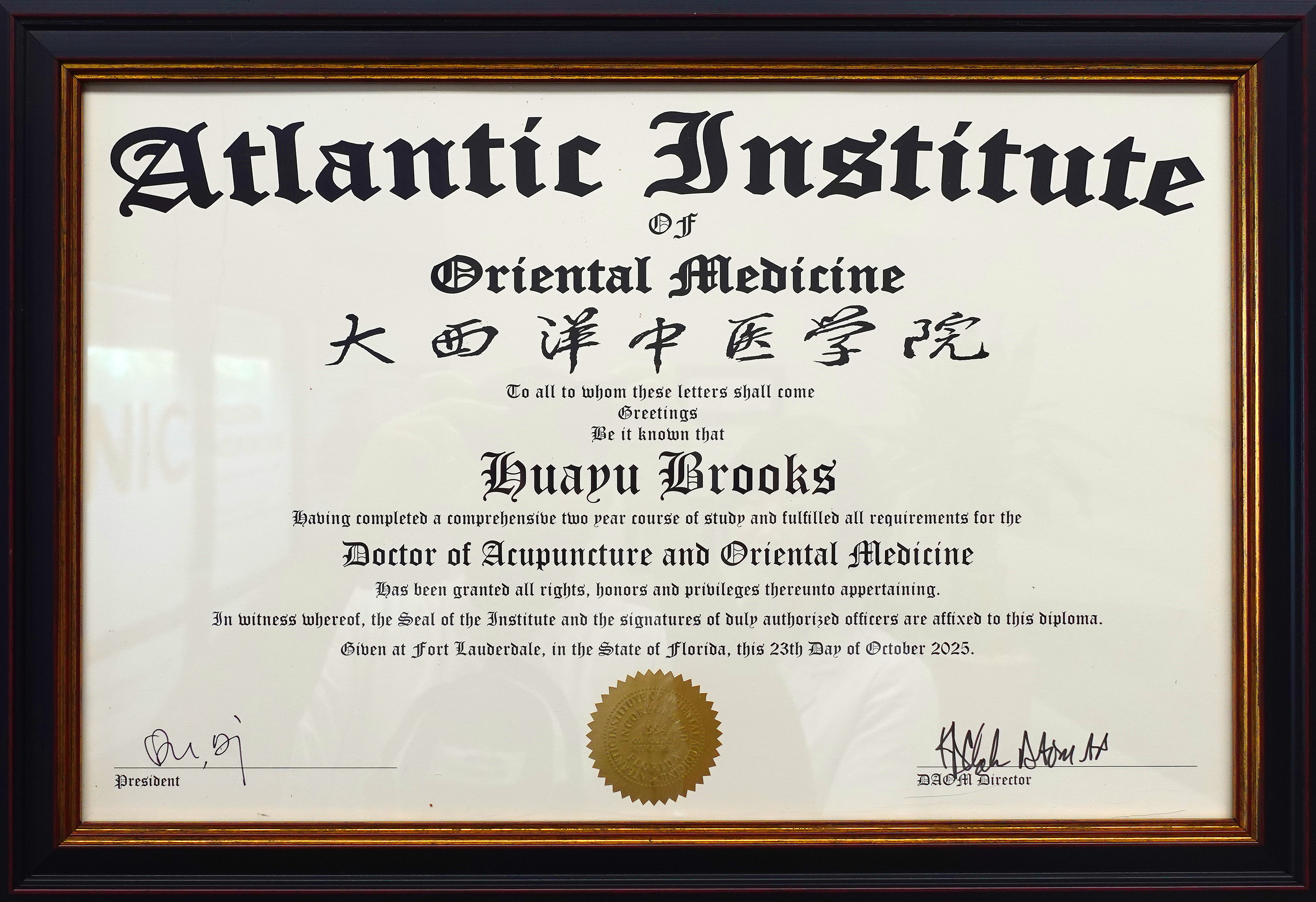 Seeking to expand her ability to help patients at a deeper level, she pursued formal education at the Atlantic Institute of Oriental Medicine in Fort Lauderdale, one of the region's most respected TCM programs. She earned her Bachelor's in Health Science, Master of Oriental Medicine, and ultimately her Doctorate of Acupuncture and Oriental Medicine (DAOM).
