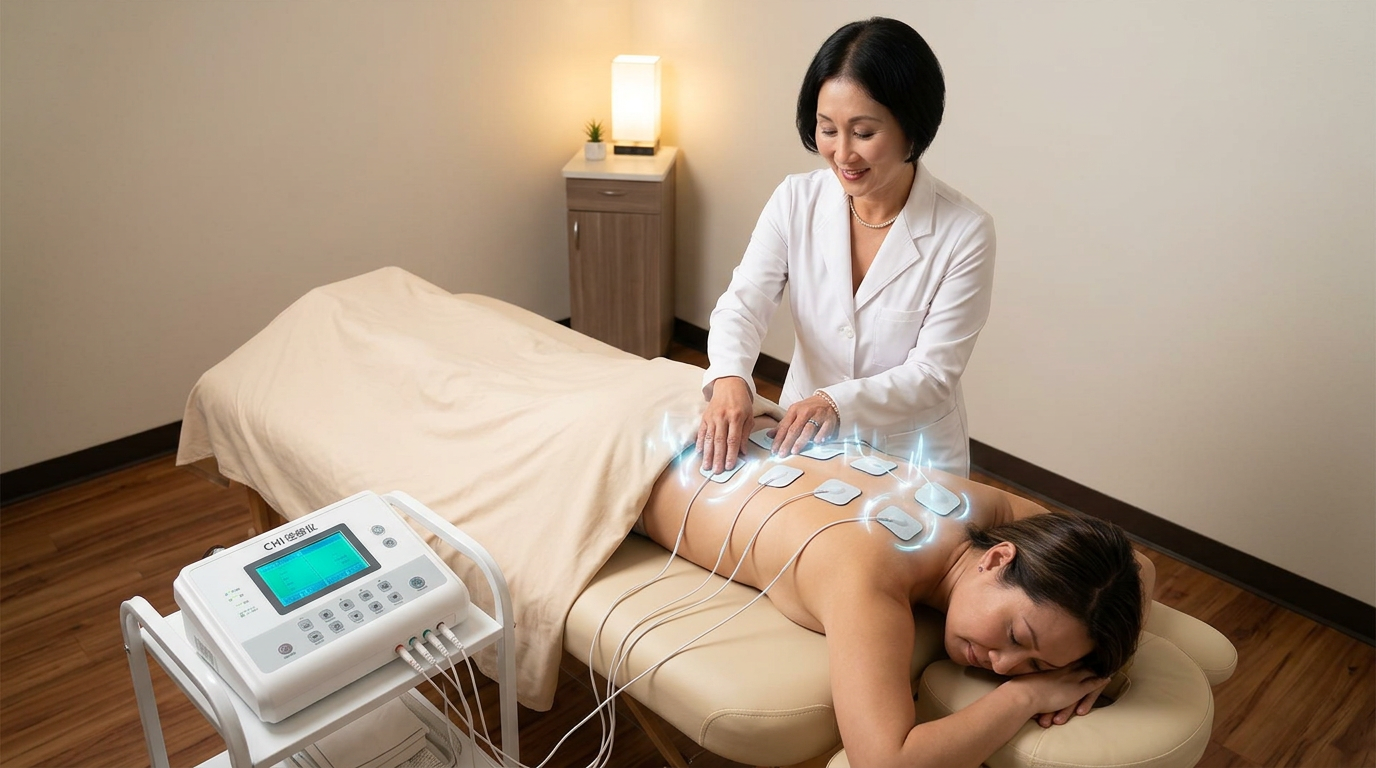 The thermal component gently raises body temperature, promoting circulation and metabolic activity at the cellular level. The electrical component activates key acupuncture points along meridian pathways, supporting the body's natural energy flow — making it especially valuable for patients who prefer a needle-free approach.